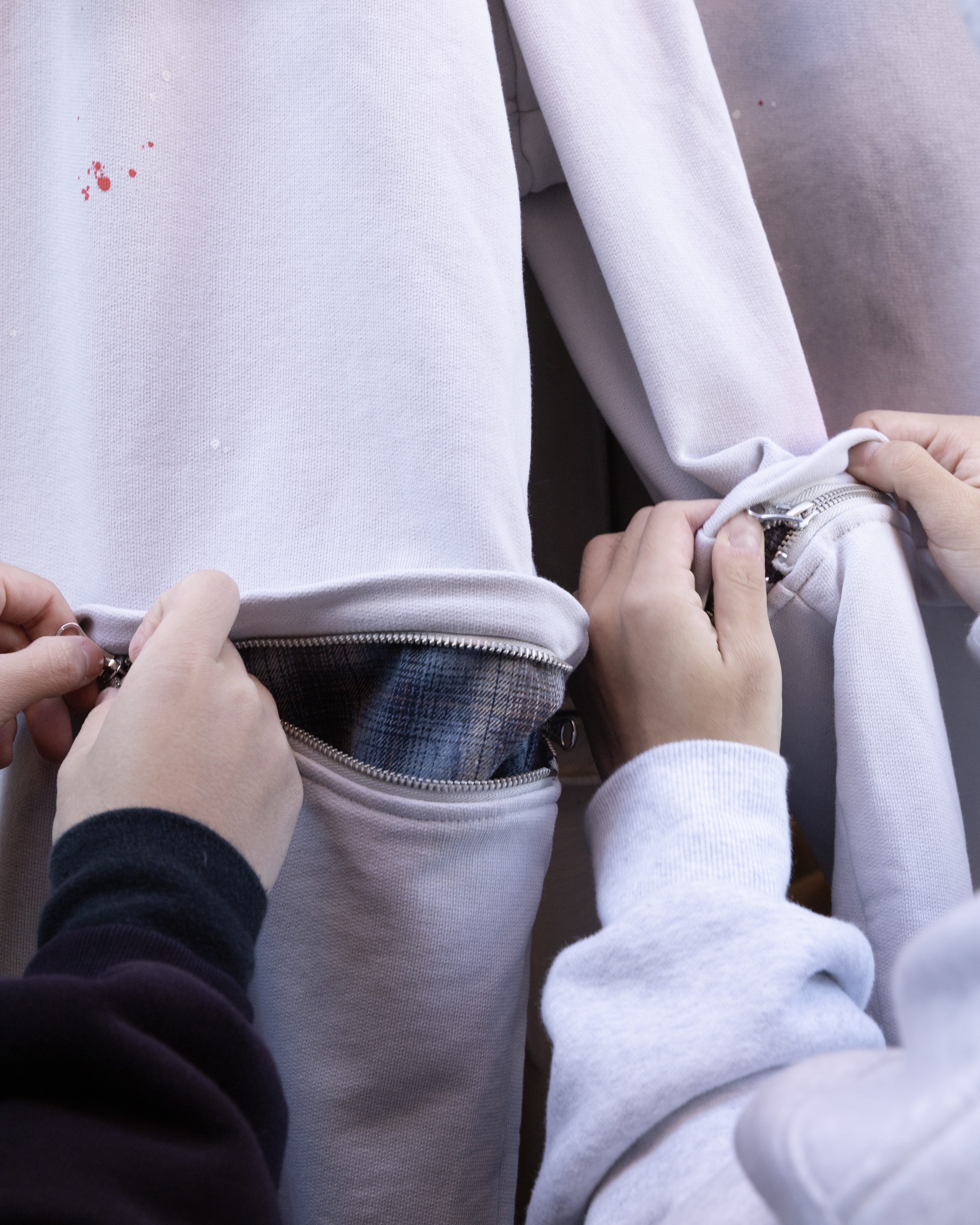 – Movable double way zipper with plaid fabric inside