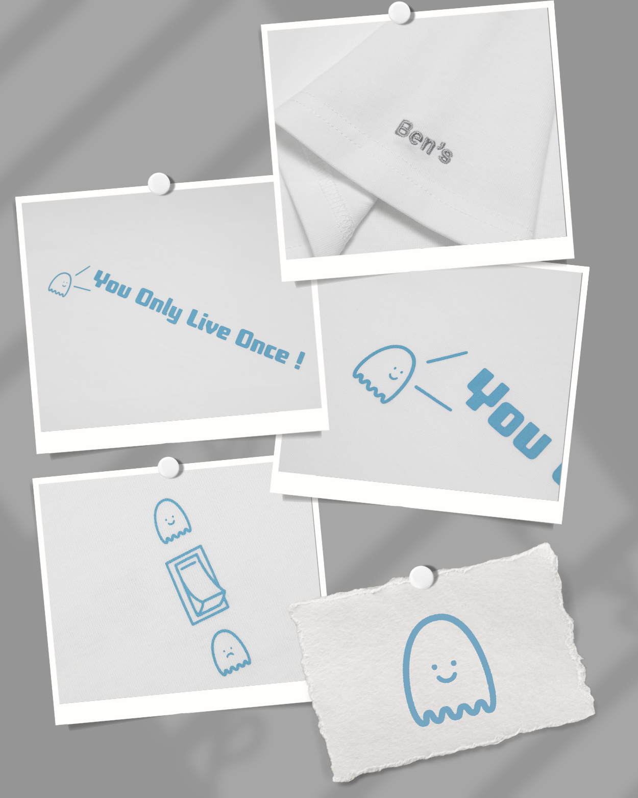 本次設計的圖樣富有故事性,正面以不同情緒的小幽靈搭配開關,象徵自我情緒的掌控,不被外界左右